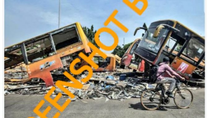 Sedangkan, ketiga foto selanjutnya merupakan foto bangkai bus TransJakarta hasil pengadaan tahun 2013 di Dramaga, Bogor. Foto kedua dapat ditemukan dalam artikel Republika berjudul “Kuburan Transjakarta” yang diunggah pada 3 November 2020. Foto ketiga dapat dilihat dalam artikel Republika berjudul “Ratusan ‘Bangkai’ Bus Transjakarta Hasil Tender 2013 Dibelah” yang diunggah pada 2 November 2020. Sedangkan, foto keempat dapat dilihat dalam artikel TribunNews Bogor berjudul “Gudang Penampungan Bangkai Bus Transjakarta di Dramaga Bogor Terbakar, 37 Bus Hangus” yang diunggah pada 13 November 2020.