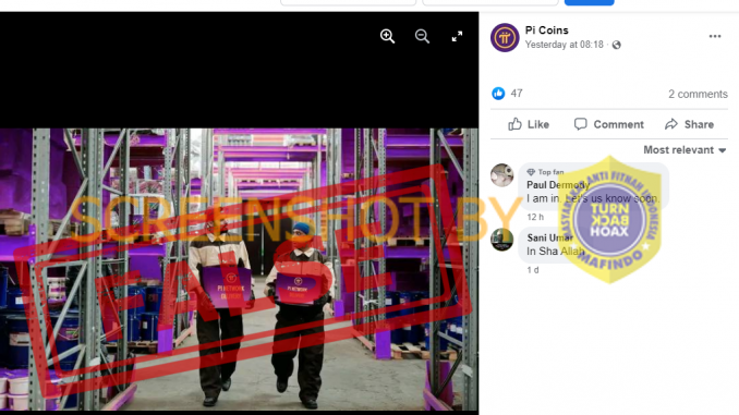 Beredar postingan di Facebook sebuah foto yang memperlihatkan 2 pria yang membawa box dengan tulisan “PI NETWORK DELIVERY”.
