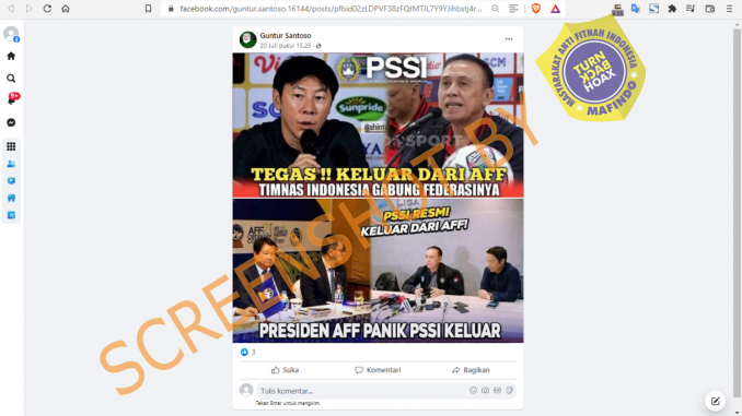 Beredar sebuah informasi di Facebook yang mengabarkan bahwa PSSI keluar dari AFF. Informasi tersebut beredar setelah kabar bahwa PSSI tengah melayangkan surat protes kepada AFF terkait dugaan match fixing dalam laga Vietnam melawan Thailand pada ajang Piala AFF U-19 2022.