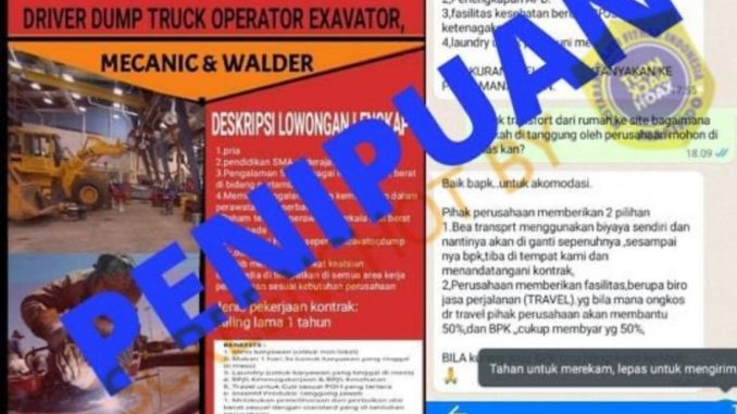 Beredar informasi lowongan pekerjaan dari PT Imecon Teknindo membutuhkan tenaga mekanik dengan kualifikasi yang disebutkan dalam flyer tersebut. Dalam postingan disertakan nomor Whatsapp untuk mengirimkan berkas lamaran dan memberikan 2 pilihan biaya akomodasi yaitu biaya transport ditanggung sendiri dan akan diganti perusahaan. Yang kedua perusahaan memberikan fasilitas transport yang mana biaya transport ditanggung oleh pelamar sekitar 50%.