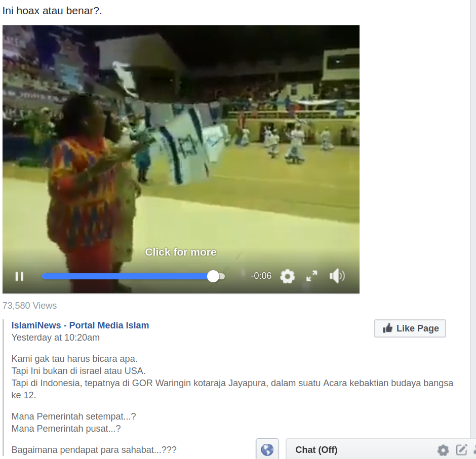 Beredar di media sosial sebuah video pengibaran bendera Israel oleh suatu kelompok dalam sebuah acara di GOR Waringin, Jayapura, Irian Jaya, yang membuat heboh warganet. Selain itu, mereka melakukan aksi konvoi kendaraan yang juga mengibarkan bendera Israel selama perjalanan.