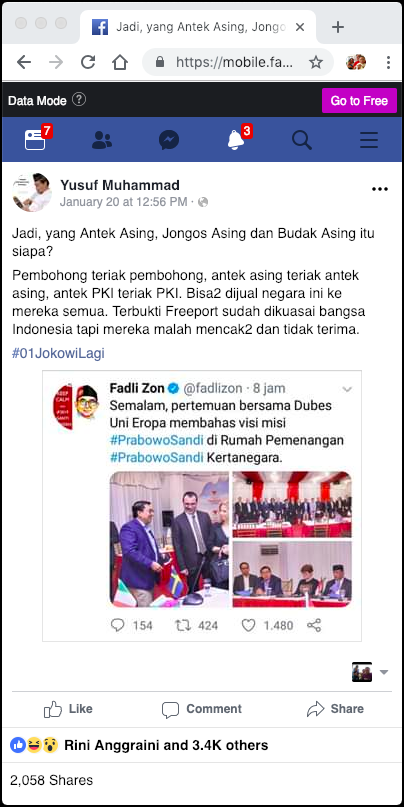 Pembohong teriak pembohong, antek asing teriak antek asing, antek PKI teriak PKI. Bisa2 dijual negara ini ke mereka semua. Terbukti Freeport sudah dikuasai bangsa Indonesia tapi mereka malah mencak2 dan tidak terima."