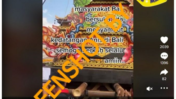 Akun TikTok dengan nama pengguna “azissyaifudin111” mengunggah sebuah video yang menunjukkan banyak orang tengah melakukan suatu upacara. Unggahan tersebut juga disertai narasi yang menyatakan bahwa upacara tersebut merupakan upacara penyambutan Anies Baswedan yang dilakukan oleh masyarakat Bali.