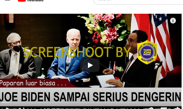 Informasi yang salah, faktanya gambar thumbnail di video itu merupakan hasil editan, gambar sebenarnya adalah foto Joe Biden bersama Presiden Joko Widodo di The Apurva Kempinski Bali, 14 November 2022.