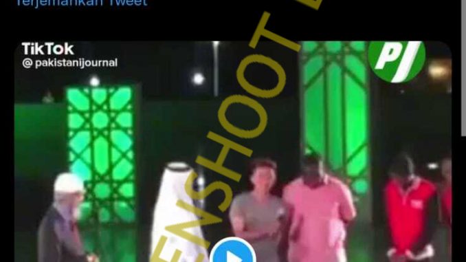 Melansir suara.com, ada narasi di media sosial menyebutkan ustadz kontroversial Zakir Naik pimpin syahadat penonton Piala Dunia 2022 Qatar masuk Islam. Video itu beredar di tengah perhelatan Piala Dunia 2022 tengah digelar.