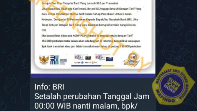 Beredar sebuah akun telegram yang mengatasnamakan BRI. Pada akun tersebut memiliki sebanyak lebih dari 39.000 anggota yang tergabung. Dalam informasinya, akun tersebut menyebutkan terkait dengan perubahan biaya transfer senilai Rp 150.000.