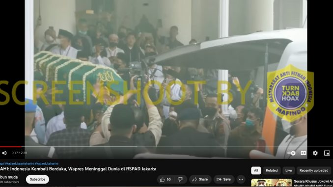 Kanal Youtube Tribun Muda mengunggah video dengan klaim bahwa Ma’ruf Amin, Wakil Presiden Republik Indonesia meninggal dunia pada tanggal 29 November 2022 di RSPAD Jakarta.