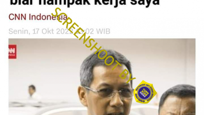 Gambar yang telah disunting pada bagian judul. Faktanya, diketahui bahwa tangkapan layar tersebut berasal dari artikel milik cnnindonesia.com berjudul “Kinerja Heru Jadi Pj Gubernur DKI Dievaluasi 3 Bulan Sekali”.