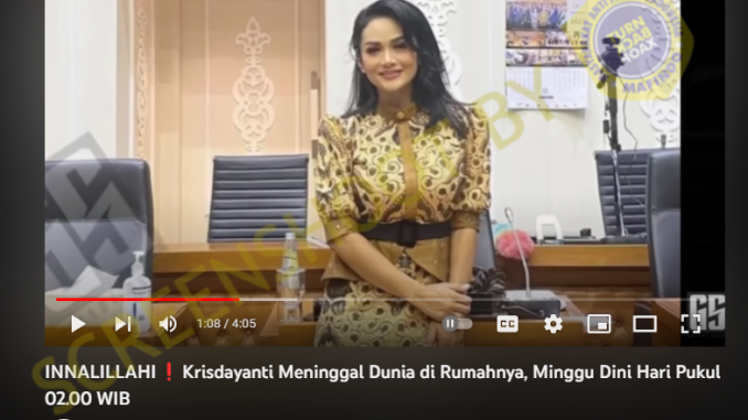 Unggahan video dengan klaim bahwa penyanyi sekaligus politikus Krisdayanti meninggal dunia akibat dibunuh oleh suaminya adalah konten yang menyesatkan. Faktanya, Krisdayanti yang dimaksud dalam video tersebut adalah seorang perempuan berusia 21 tahun yang tinggal di Kelurahan Muara Fajar, Pekanbaru, Riau.