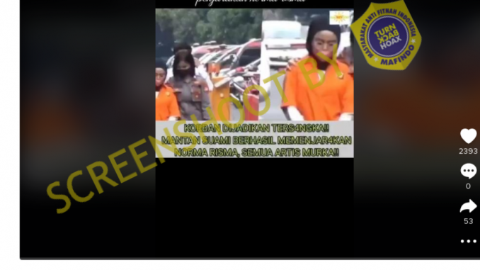 Unggahan video dengan klaim Norma Risma berhasil dipenjarakan oleh mantan suaminya adalah informasi yang salah. Faktanya, wanita di video itu bukan Norma Risma melainkan artis Medina Zein yang ditangkap polisi pada 7 Juli 2022.