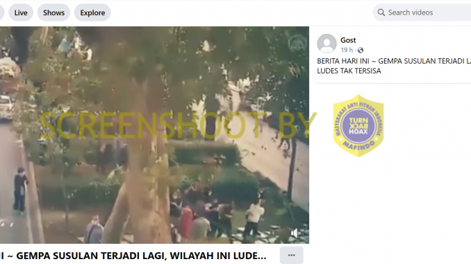 Rabu, 25 Januari 2023 sebuah akun facebook dengan nama Gost (https://www.facebook.com/profile.php?id=100082398851510) membagikan sebuah video dengan mengklaim bahwa telah terjadi gempa susulan di beberapa wilayah Indonesia, yakni Bengkulu dan Maluku hingga mengakibatkan wilayah tersebut ludes tak tersisa. Namun, dikutip dari idntimes.com (https://www.idntimes.com/) faktanya gempa susulan yang terjadi di Bengkulu dan Maluku tidak menimbulkan kerusakan fatal.