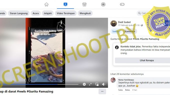 Beredar video dari akun facebook bernama Dedi Soded yang menampilkan seekor gurita besar sedang berjalan memutar dan berganti kulit sambil diguyur air dengan narasi yang menyatakan bahwa gurita bisa hidup di darat.