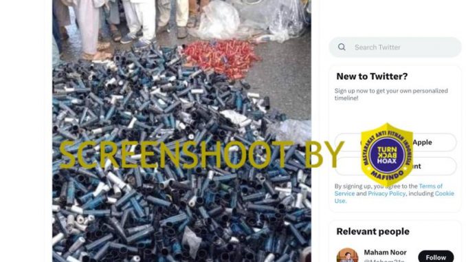 Akun Twitter @Maham31noor (Maham Noor) mengunggah foto tumpukan tabung gas air mata kosong yang diklaim digunakan oleh polisi pada demonstrasi yang mendukung mantan Perdana Menteri Imran Khan Maret ini. Foto dan cuitan yang diunggah pada 15 Maret tersebut telah disukai oleh hampir 70 orang, dibagikan dan dikutip ulang 70 kali, serta telah dilihat lebih dari 9,000 kali.