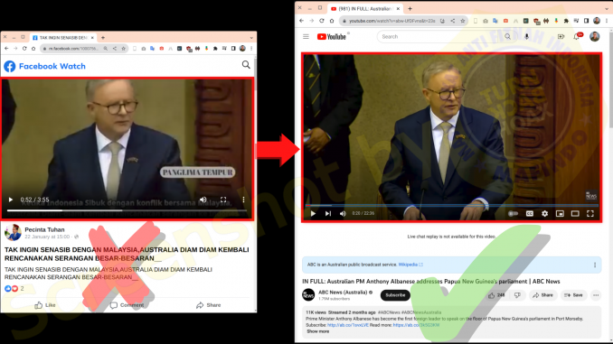 Salah satu sumber video dengan bagian yang identik, ABC News (Australia) di YouTube: “#ABCNews #ABCNewsAustralia Prime Minister Anthony Albanese has become the first foreign leader to speak on the floor of Papua New Guinea’s parliament in Port Morseby. …”
