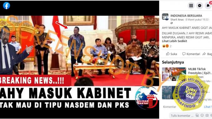 Dengan demikian, AHY masuk kabinet, resmi menjadi Menpora adalah tidak benar dengan kategori Konteks yang Salah.