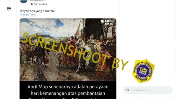 Konten yang menyesatkan. Tidak ada bukti dan penjelasan yang valid mengenai asal-usul April Mop sebagai hari pembantaian umat Muslim di Spanyol pada 1487.
