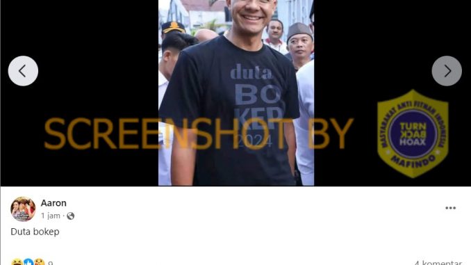 Tulisan pada baju yang digunakan Ganjar telah diedit. Faktanya, tulisan yang asli Mu Dik bukan duta BO KEP 2024.