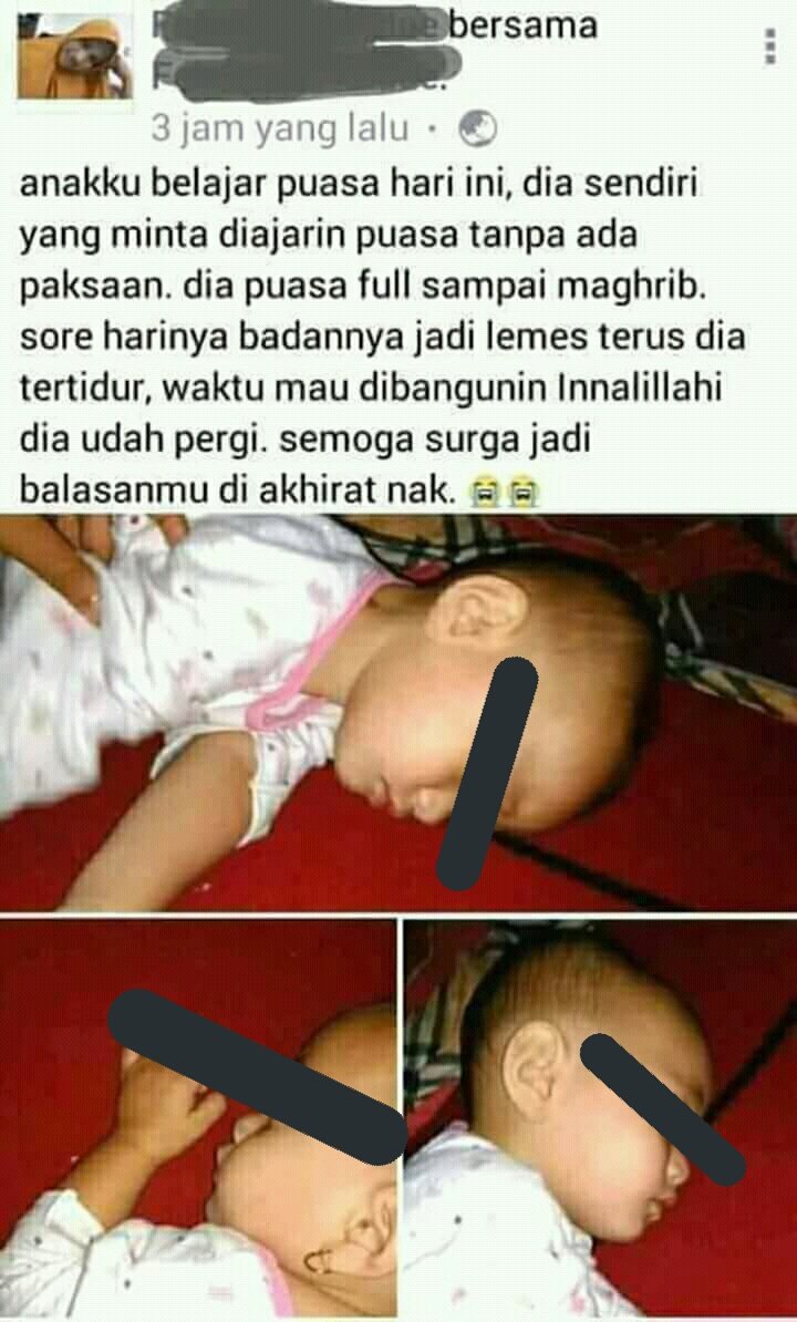 Foto bayi itu diberi keterangan bahwa ia telah meninggal karena puasa hingga Magrib.
