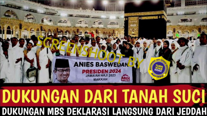 Tidak ditemukan juga video yang menyebut bahwa ada ribuan jamaah Indonesia sedang mendeklarasikan Anis BAswedan sebagai Presiden dari Jeddah.