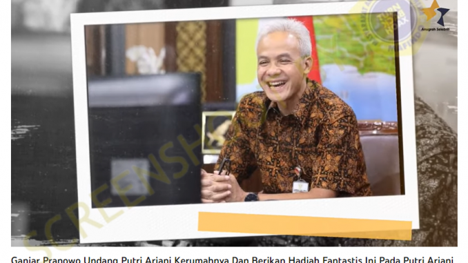 Kanal YouTube Anugrah Selebriti (https://www.youtube.com/@anugrahselebriti) pada 7 Juli 2023 mengunggah video dengan klaim bahwa Ganjar Pranowo mengundang sekaligus memberikan hadiah fantastis kepada Putri Ariani. Sebelumnya, nama Putri Ariani tengah menjadi perbincangan karena penyanyi sekaligus penulis lagu pop penyandang tunanetra ini berhasil mendapatkan golden buzzer pada audisi America’s Got Talent di musim ke-18.