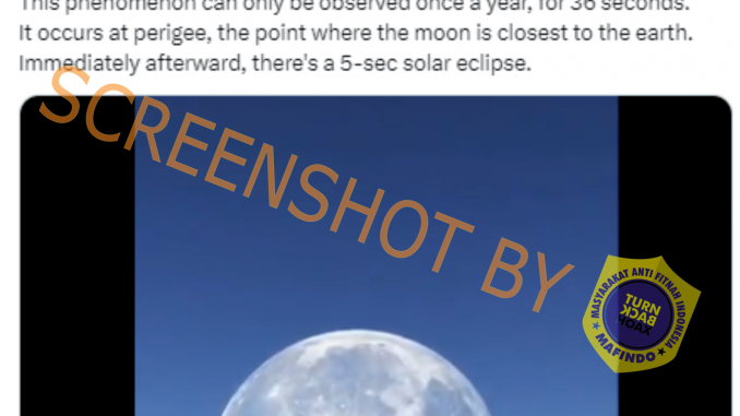 Unggahan di Twitter pada 28 Juni 2023 membagikan sebuah video yang menunjukkan terbitnya bulan yang terlihat besar selama 36 detik. Video tersebut diklaim merupakan fenomena langka yang hanya terjadi setahun sekali. Dalam video tersebut juga terlihat bulan menutupi matahari sehingga menimbulkan gerhana matahari selama 5 detik.