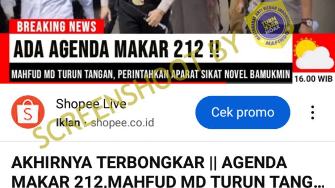 Akun YouTube Suara Politik pada 19 Juli 2023 mengunggah video dengan judul “AKHIRNYA TERBONGKAR || AGENDA MAKAR 212, MAHFUD MD TURUN TANGAN PERINTAHKAN APARAT SIKAT OMPONG NOVEL”. Judul tersebut tidak sesuai dengan isi dari video yang diunggah. Video yang berdurasi 10 menit 5 detik itu tidak membahas Mahfud MD memerintah aparat untuk menangani Novel.