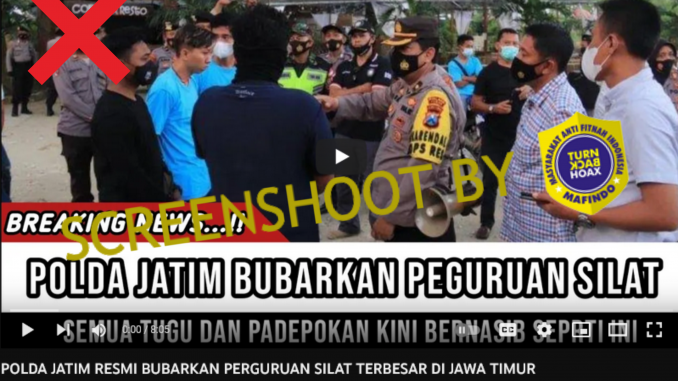 Tentunya klaim tersebut merupakan informasi yang keliru karena Polda Jatim bukan membubarkan perguruan silat tersebut, tetapi mereka hanya menghimbau untuk melakukan pembongkaran terhadap tugu-tugu dari perguruan silat di Jawa Timur untuk penertiban.