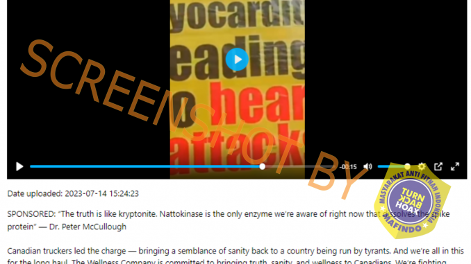 Beredar unggahan di Instagram yang membagikan informasi bahwa Spike Protein yang masuk ke dalam tubuh akibat dari infeksi Covid-19 dan vaksin Covid-19 mengakibatkan kematian, satu-satunya yang dapat mendetoksifikasi Spike Protein tersebut adalah dengan suplemen yang mengandung Nattokinase.