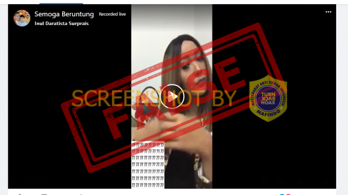 Beredar akun dengan nama 𝗜𝗻𝘂𝗹 𝗗𝗮𝗿𝗮𝘁𝗶𝘀𝘁𝗮 𝗦𝘂𝗿𝗽𝗿𝗮𝗶𝘀 (fb.com/100076854625538) yang mengunggah sebuah video yang menampilkan penyanyi dangdut Inul Daratista dengan narasi:
