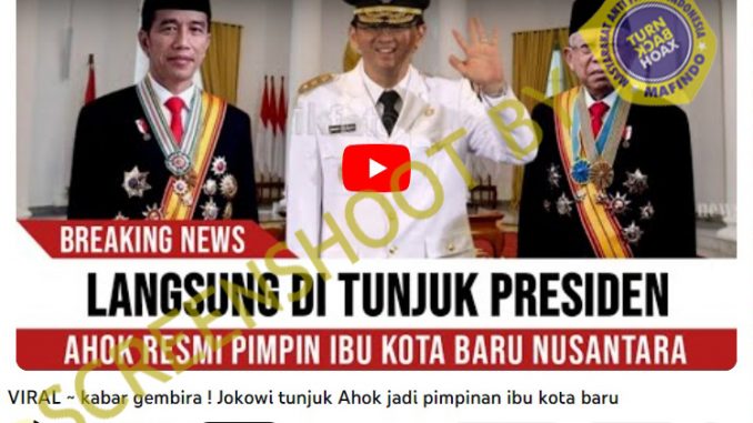 Channel youtube bernama KURSI POLITIK pada 23 September 2023 membagikan sebuah video bernarasikan Jokowi tunjuk Ahok menjadi pimpinan untuk Ibu Kota baru Nusantara.
