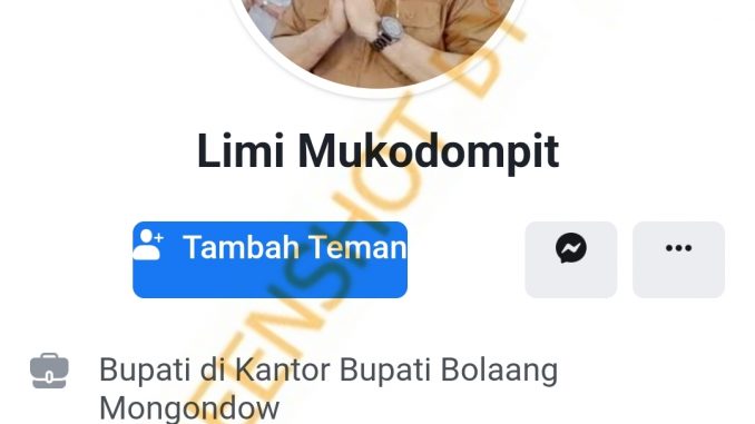 Beredar akun Facebook mengatasnamakan Pj Bupati Bolaang Mongondow Limi Mukodompit. Akun Facebook tersebut memakai foto profil Limi memakai pakaian dinas.