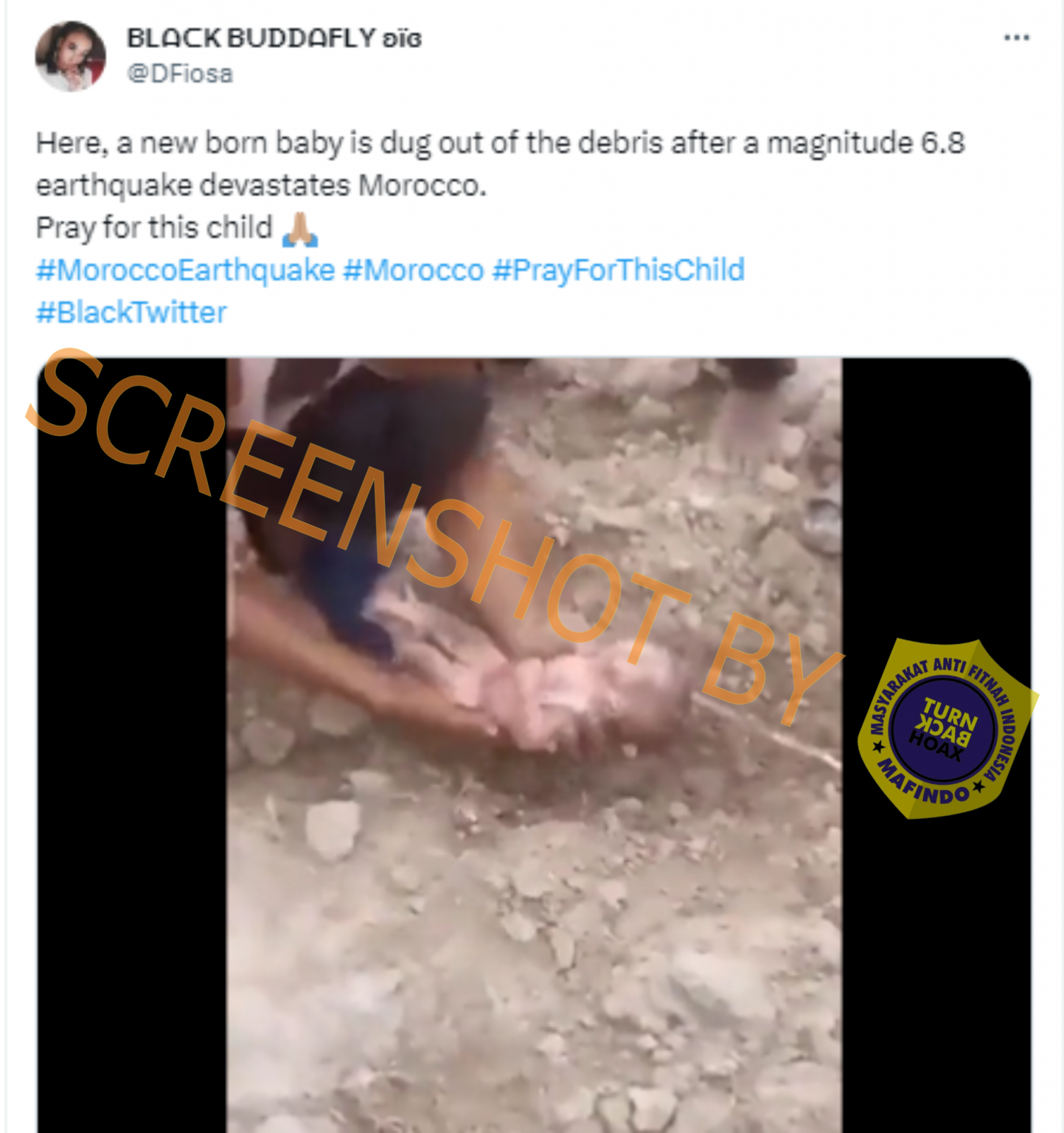 Dengan demikian video bayi baru lahir yang diklaim selamat dari runtuhan gempa Maroko adalah tidak benar dengan kategori Konteks yang Salah.
