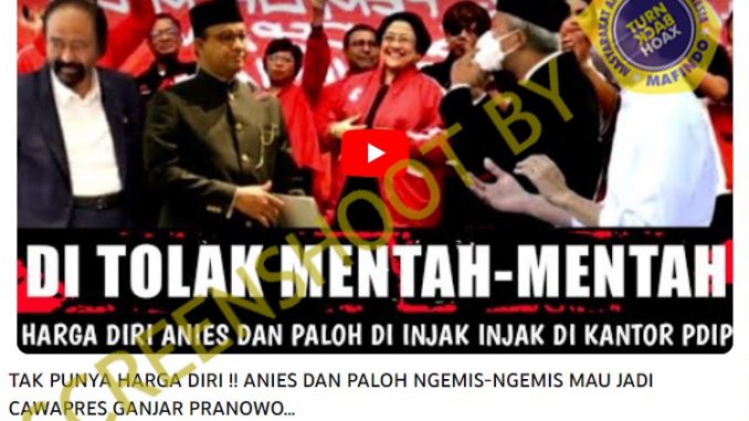 Sebuah video bernarasi Anies Baswedan dan Surya Paloh ngemis mau jadi cawapres Ganjar Pranowo beredar dari channel youtube bernama AKTUAL pada 3 Oktober 2023.