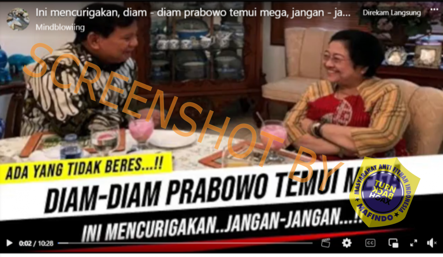 Sebuah video di Facebook dengan thumbnail yang memperlihatkan pertemuan Prabowo dan Megawati, pertemuan tersebut diklaim bahwa Prabowo diam-diam menemui Megawati untuk membahas soal Gibran yang mana kader PDI Perjuangan menjadi Cawapres Prabowo yang mana kader dari partai yang tidak mengusungnya sebagai Capres.