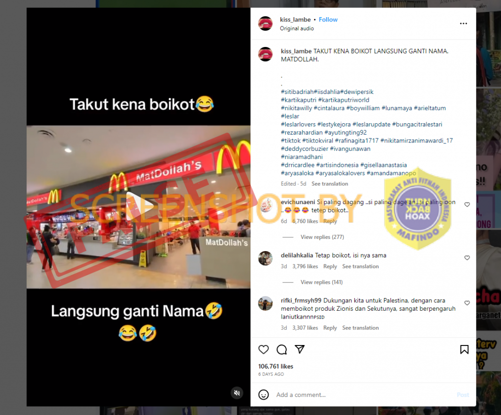 Berdasarkan hasil penelusuran, adanya foto yang menampilkan sebuah outlet dengan nama “MatDollah’s” dengan logo yang identik dengan logo McDonald’s merupakan konten yang dimanipulasi.