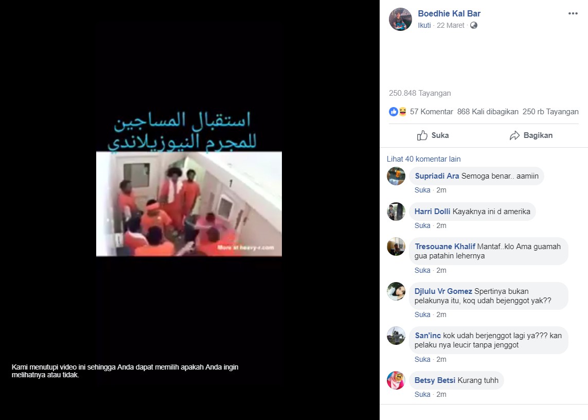 Beredar sebuah video yang diklaim sebagai peristiwa pemukulan terhadap pelaku terorisme masjid Christchurch, Selandia Baru, Brenton Tarrant. Dalam narasi video tersebut disebutkan bahwa peristiwa dalam video diambil saat Tarrant baru masuk penjara dan dipukuli oleh narapidana lainnya.