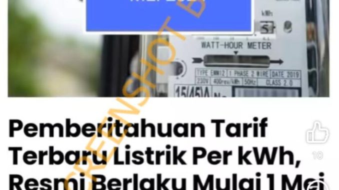 Akun facebook dsutiyanti telah mengunggah reel mengenai kenaikan tarif listrik mulai awal Mei 2024. Postingan tersebut telah diunggah pada 1 Mei 2024.