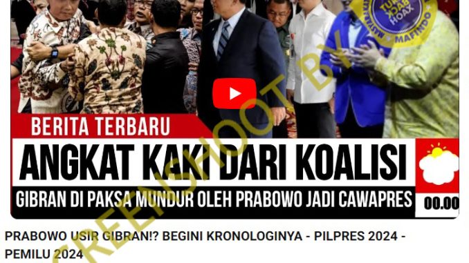 Sebuah video bernarasikan Gibran Rakabuming Raka dipaksa mundur oleh Prabowo jadi cawapres beredar dari channel youtube bernama Kabar Akurat pada 28 Juli 2024.