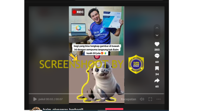 Video dengan narasi Baim Wong bagi-bagi uang merupakan konten tiruan (impostor content) untuk modus penipuan.