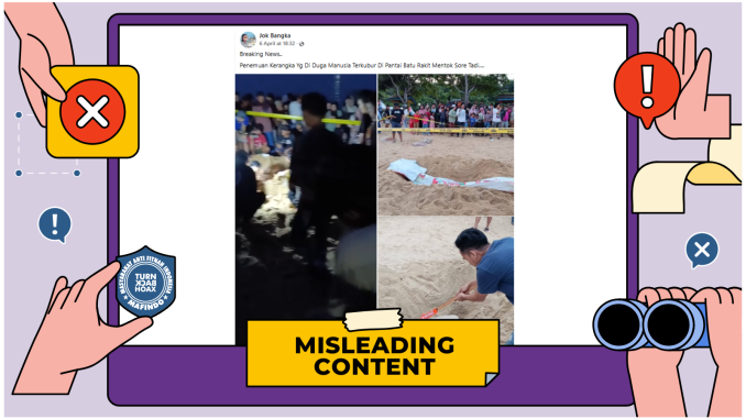 Unggahan video berisi klaim “penemuan kerangka manusia di Pantai Batu Rakit” merupakan konten yang menyesatkan (misleading content).