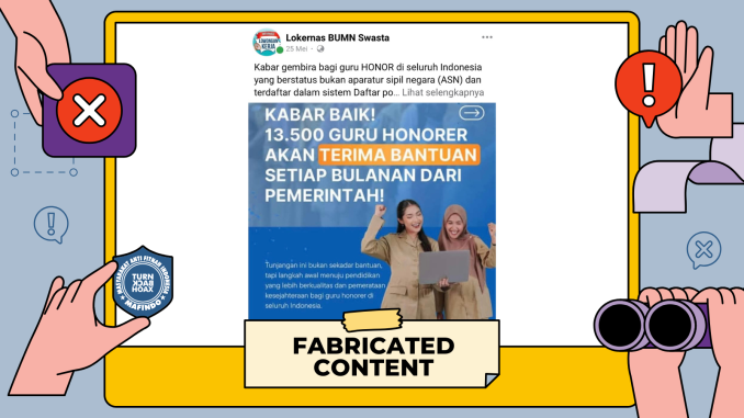 Unggahan berisi tautan “pendaftaran bantuan untuk guru honorer” merupakan konten palsu (fabricated content).