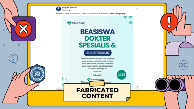 Unggahan berisi tautan “pendaftaran beasiswa LPDP dokter spesialis dan subspesialis” merupakan konten palsu (fabricated content).