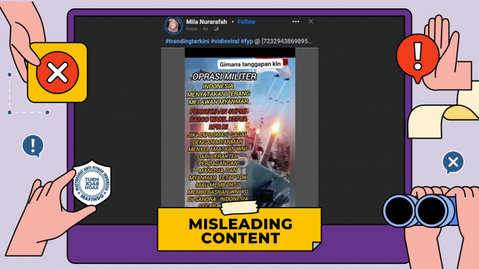 Unggahan berisi klaim “Indonesia menyatakan perang melawan Myanmar” adalah konten yang menyesatkan (misleading content).