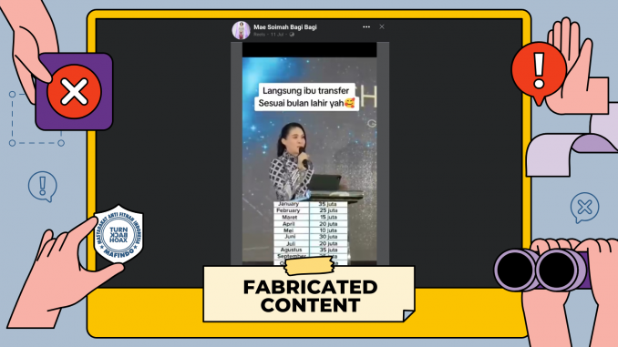 Unggahan video berisi klaim “Gubernur Maluku Utara Sherly Tjoanda bagi-bagi uang” merupakan konten palsu (fabricated content).
