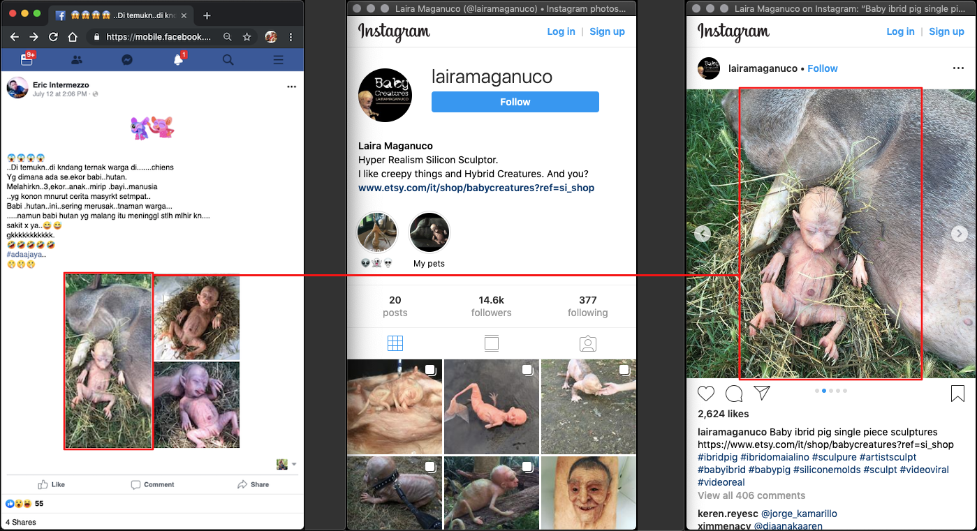 Pelintiran daur ulang. Foto yang dibagikan adalah patung silikon “Baby Hibrid Pig” karya Laira Maganuco, seniman patung dari Itali.