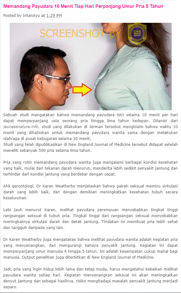 Beredar artikel yang berjudul “Memandang Payudara 10 Menit Tiap Hari Perpanjang Umur Pria 5 Tahun”. Klaim di dalam artikel ini disebut sebagai sebuah studi yang dilakukan di Jerman.