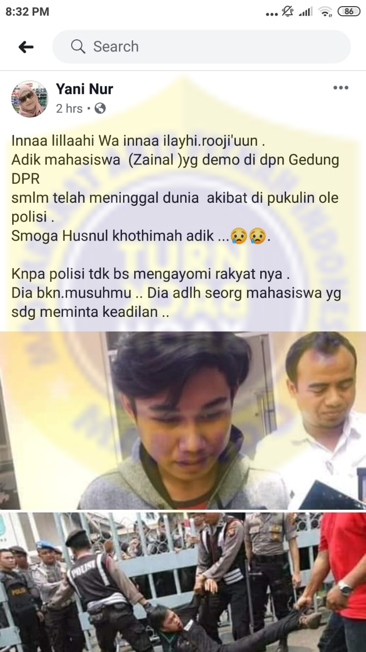 smlm telah meninggal dunia akibat di pukulin ole polisi.