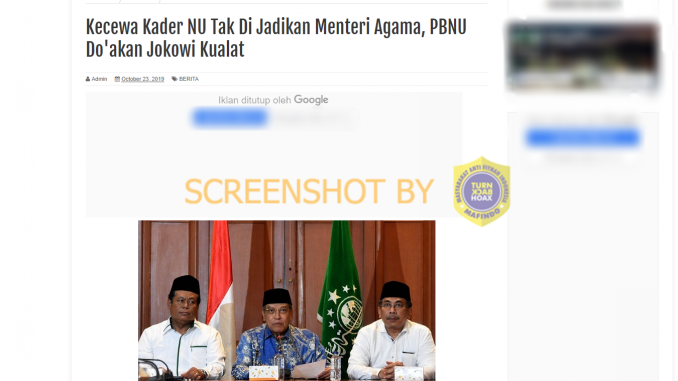 Beredar artikel yang berjudul “Kecewa Kader NU Tak Di Jadikan Menteri Agama, PBNU Do’akan Jokowi Kualat” yang dimuat di situs kabarislamnews[dot]com.