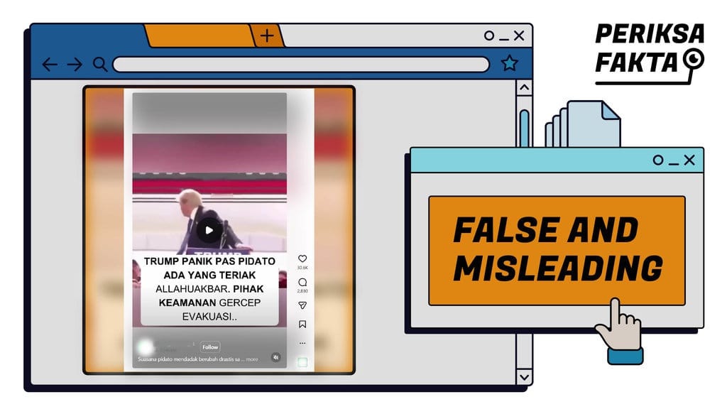 Klaim yang menyebut Donald Trump panik dan dievakuasi karena mendengar teriakan "Allahu Akbar" saat berpidato adalah tidak benar dan berpotensi menyesatkan (false and misleading).