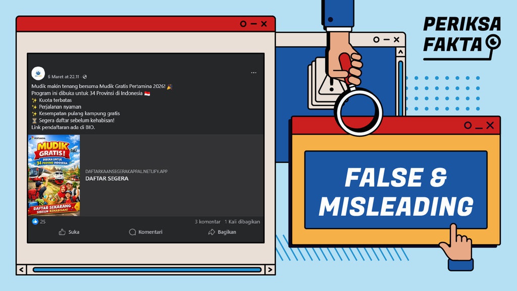 You are at:Home»CekFakta»Hoaks Tautan Pendaftaran Mudik Gratis Pertamina 2026